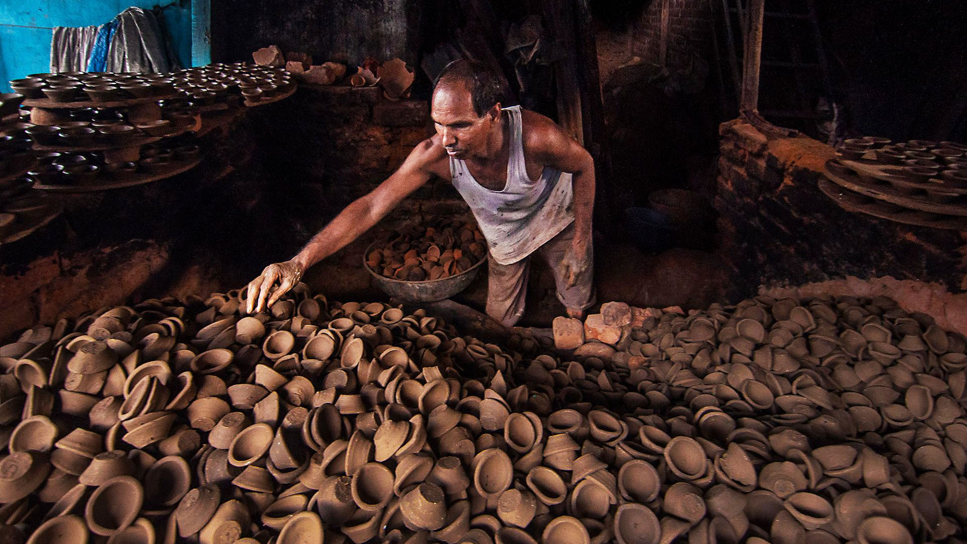 Migrant potters Saurashtra, migrants from Gujarat Ceramic In Dharavi, Kumbharwada (Kumbhar Vasti) was established at a junction of 90 feet and 60 feet on a junction of about 12.5 acres. Each house in this area also plays the role of a workplace, which usually has a clay furnace (personal or shared) and a shopkeeper on the road. The soil used is brought from Gujarat, and compared to other Dharavi industries, the soil utensils are mainly made for local customers. The maximum number of pot shops in the potter's pots is 90 feet on the road, and in the community, women also contribute to decorative coating or color on products.