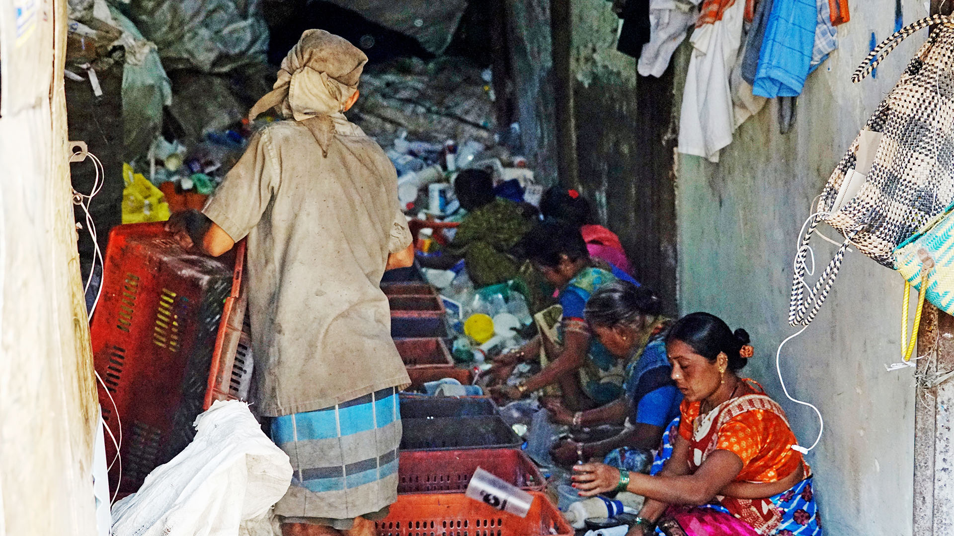 Dharavi's plastic recycling The industry plays an important role in the management of Mumbai's waste, recycling about 80% of the city. Ragpickers collect garbage throughout Mumbai, which are then classified into the recycling unit of Dharavi. Plastic is strictly separated, crushed in chips, and sold throughout the city to reuse the product. In addition, Dharavi has the industry of aluminum bricks, where aluminum bricks are produced by melting metal waste.